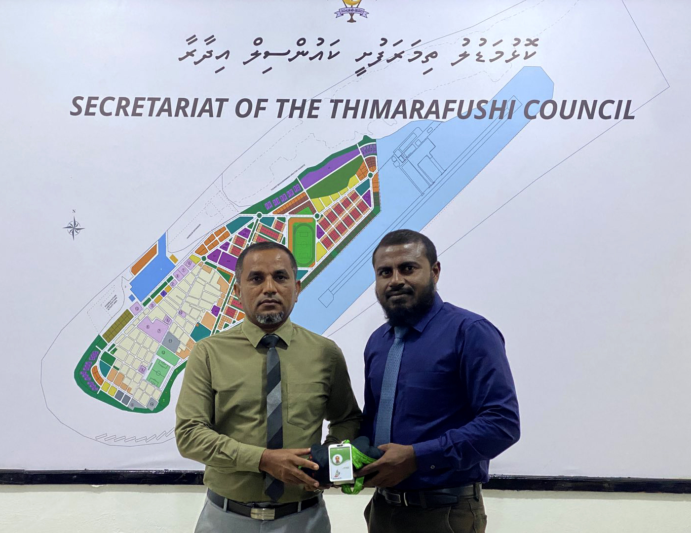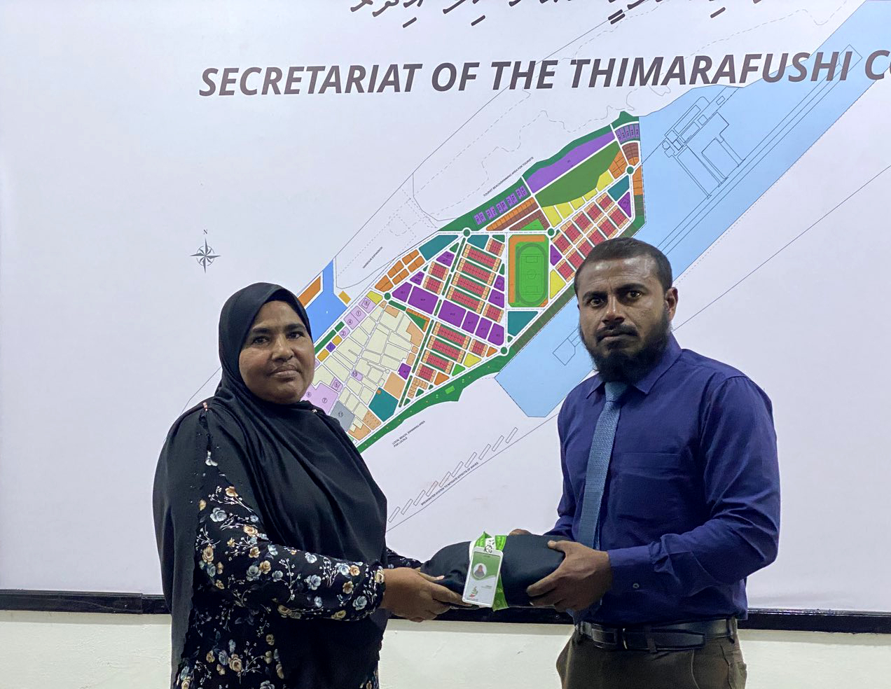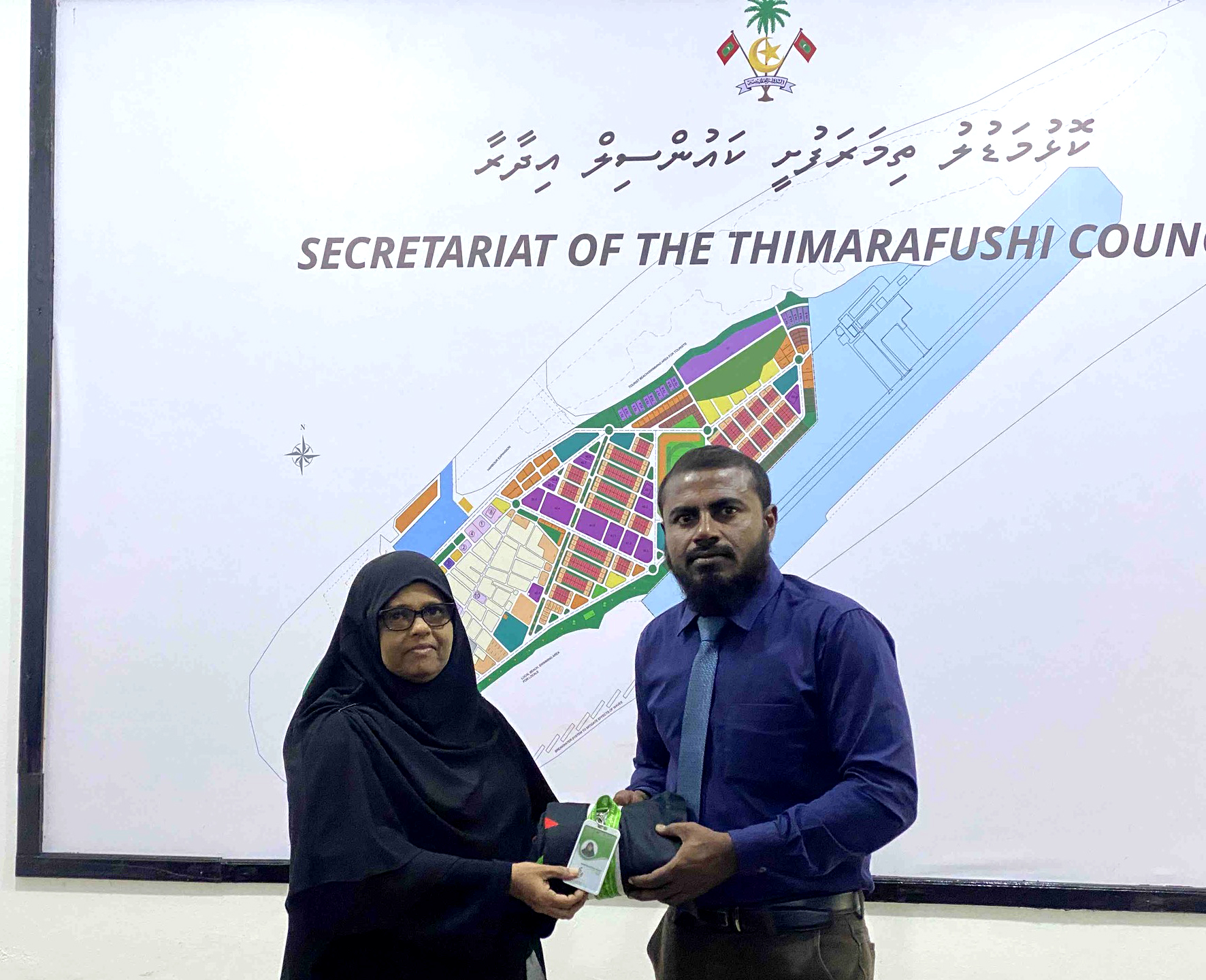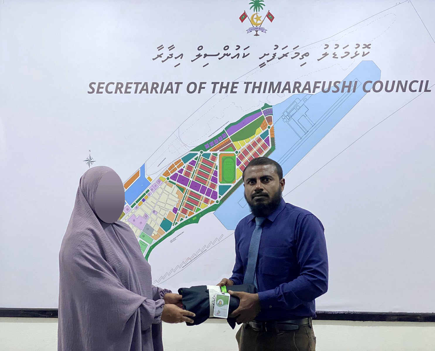 ތިމަރަފުށީ ކައުންސިލް މެމްބަރުންނާއި އިދާރީ މުވައްޒަފުންގެ އޮފީސް ޔުނިފޯމާއި ސްޓާފް ކާޑު ހަވާލުކުރުމާއި އަންހެނުންގެ ތަރައްޤީއަށް މަސައްކަތް ކުރާ ކޮމެޓީގެ އިދާރީ އޮފީސް ހަވާލުކުރުމުގެ ރަސްމިއްޔާތުގެ ތެރެއިން ތެރެއިން.
