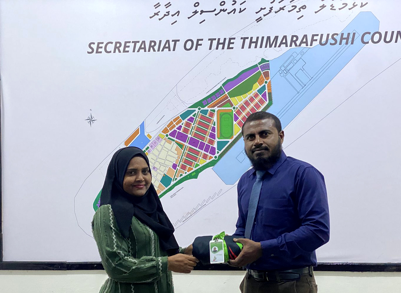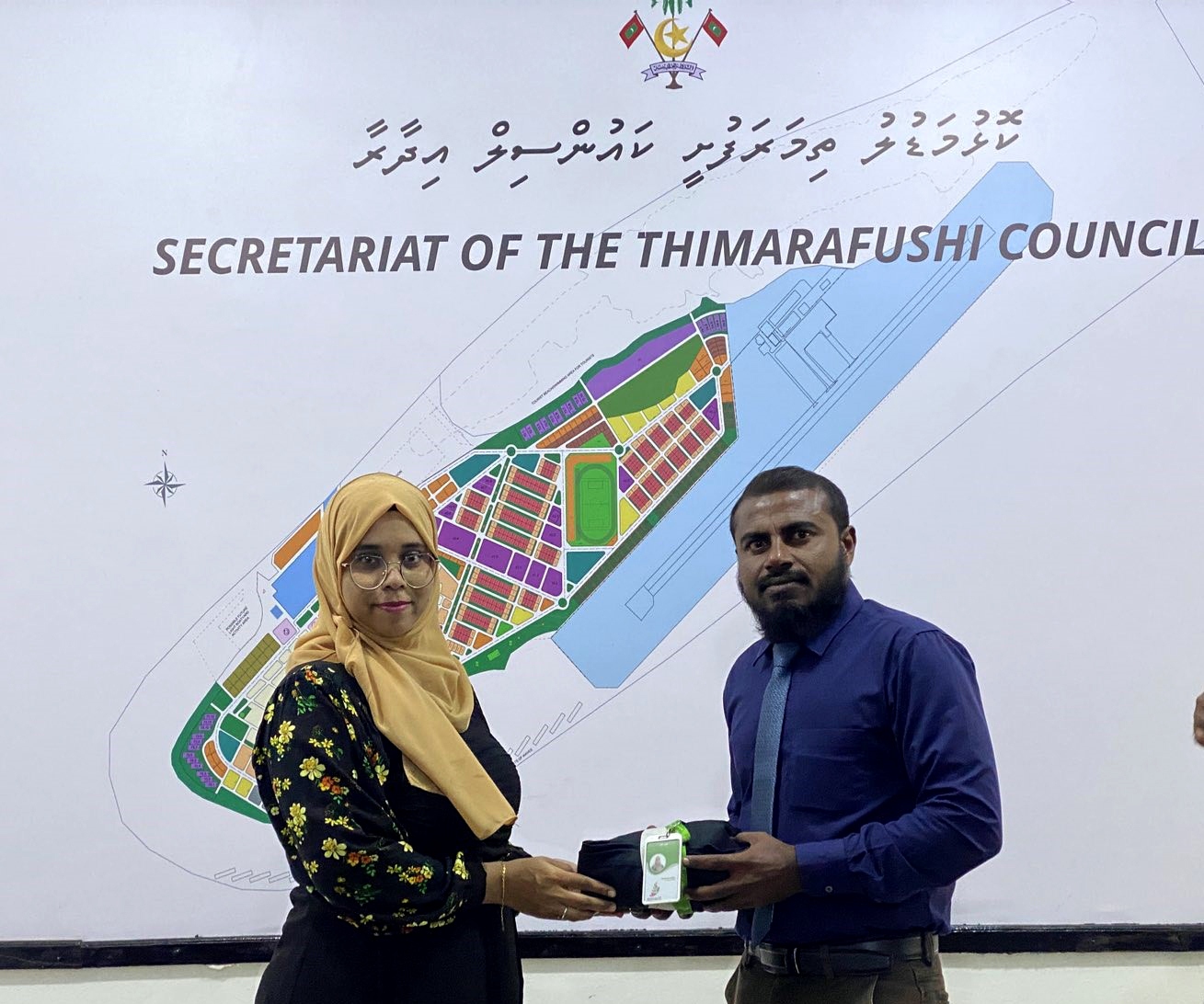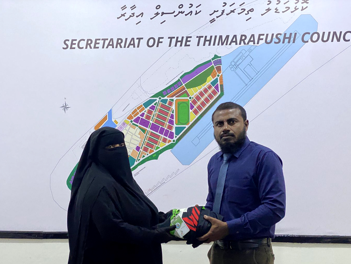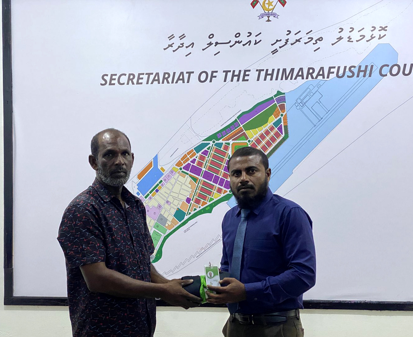ތިމަރަފުށީ ކައުންސިލް މެމްބަރުންނާއި އިދާރީ މުވައްޒަފުންގެ އޮފީސް ޔުނިފޯމާއި ސްޓާފް ކާޑު ހަވާލުކުރުމާއި އަންހެނުންގެ ތަރައްޤީއަށް މަސައްކަތް ކުރާ ކޮމެޓީގެ އިދާރީ އޮފީސް ހަވާލުކުރުމުގެ ރަސްމިއްޔާތުގެ ތެރެއިން ތެރެއިން.