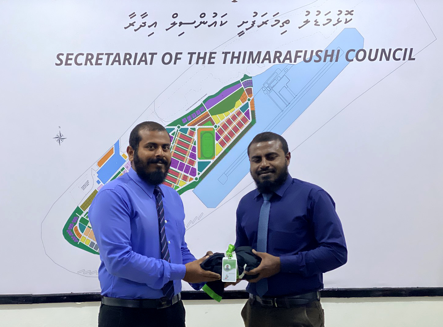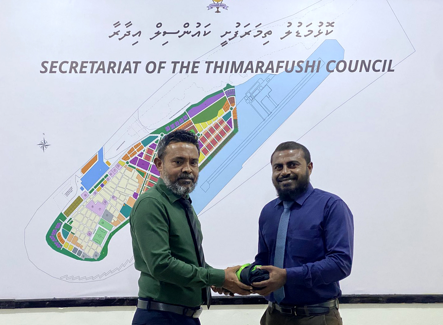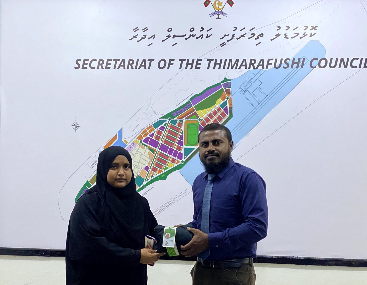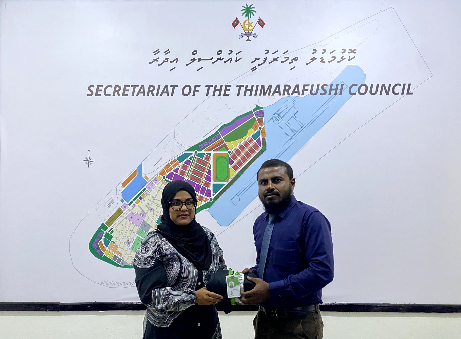 ތިމަރަފުށީ ކައުންސިލް މެމްބަރުންނާއި އިދާރީ މުވައްޒަފުންގެ އޮފީސް ޔުނިފޯމާއި ސްޓާފް ކާޑު ހަވާލުކުރުމާއި އަންހެނުންގެ ތަރައްޤީއަށް މަސައްކަތް ކުރާ ކޮމެޓީގެ އިދާރީ އޮފީސް ހަވާލުކުރުމުގެ ރަސްމިއްޔާތުގެ ތެރެއިން ތެރެއިން.