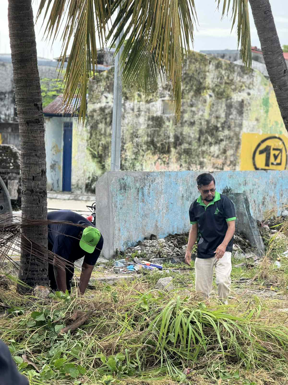 ތިމަރަފުށީ ކައުންސިލް އިދާރާގެ މުވައްޒަފުން ތިމަރަފުށީ ވޭސްޓް މެނޭޖްމެންޓް ސެންޓަރ ޢިމާރާތުގެ ގޯތިތެރެ ސާފުކުރުމުގެ ޕްރޮގްރާމްގެ ތެރެއިން.