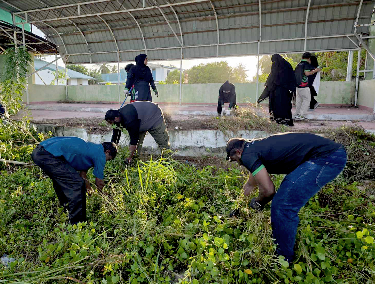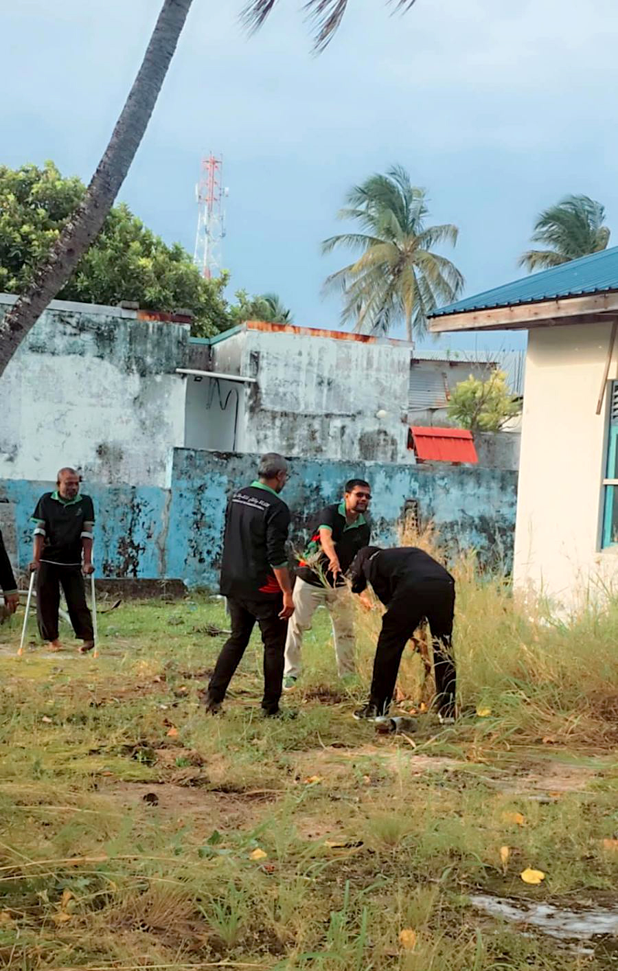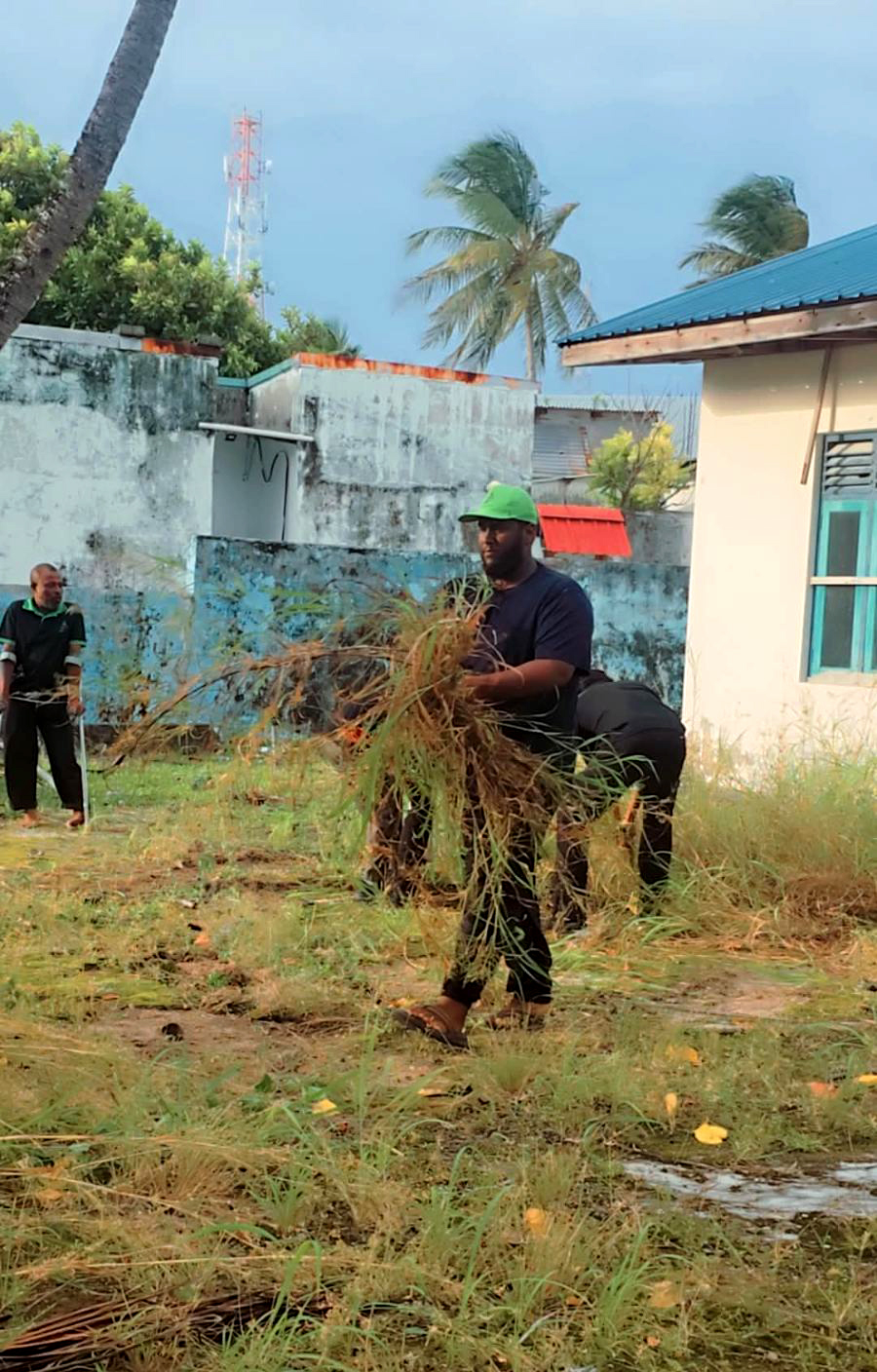 ތިމަރަފުށީ ކައުންސިލް އިދާރާގެ މުވައްޒަފުން "ރަށްވެހިގެ" ޢިމާރާތުގެ ގޯތިތެރެ ސާފުކުރުމުގެ ޕްރޮގްރާމްގެ ތެރެއިން.